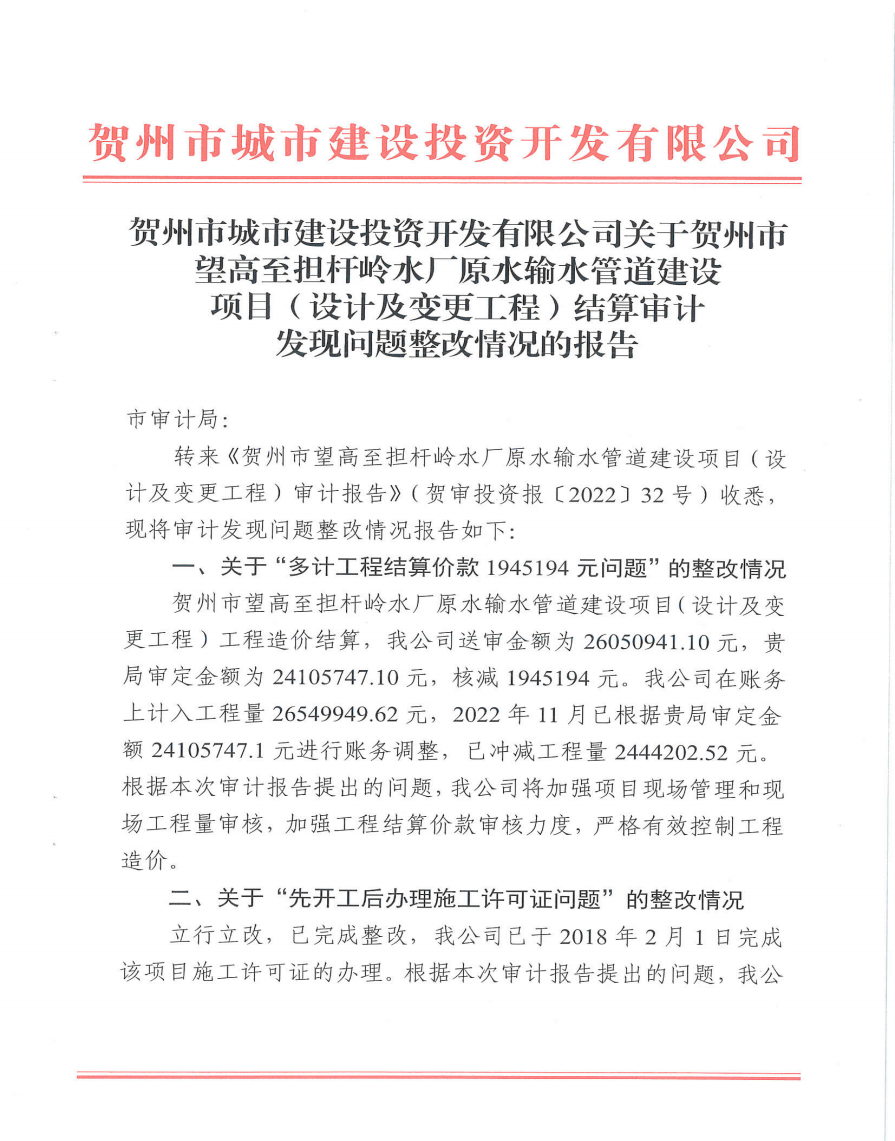 下一篇:城投公司關(guān)于城區(qū)公交站(亭)建設(shè)項(xiàng)目結(jié)算審計(jì)發(fā)現(xiàn)問題整改情況的報(bào)告