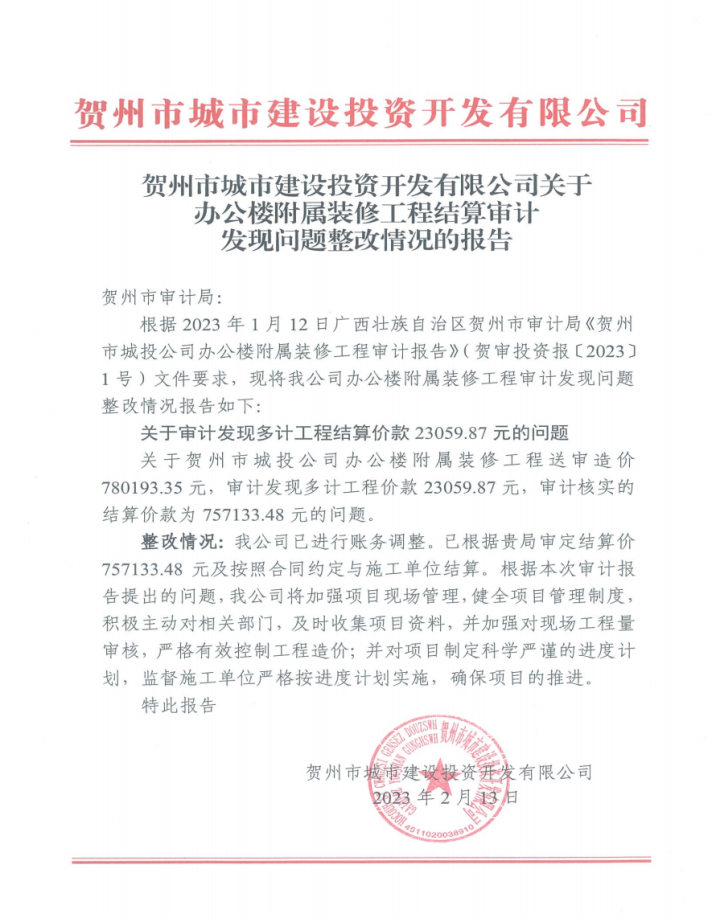 上一篇:城投公司關(guān)于城區(qū)公交站(亭)建設(shè)項目結(jié)算審計發(fā)現(xiàn)問題整改情況的報告